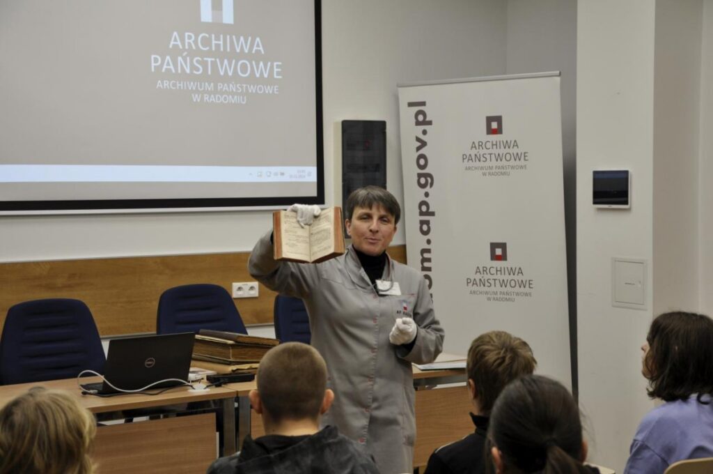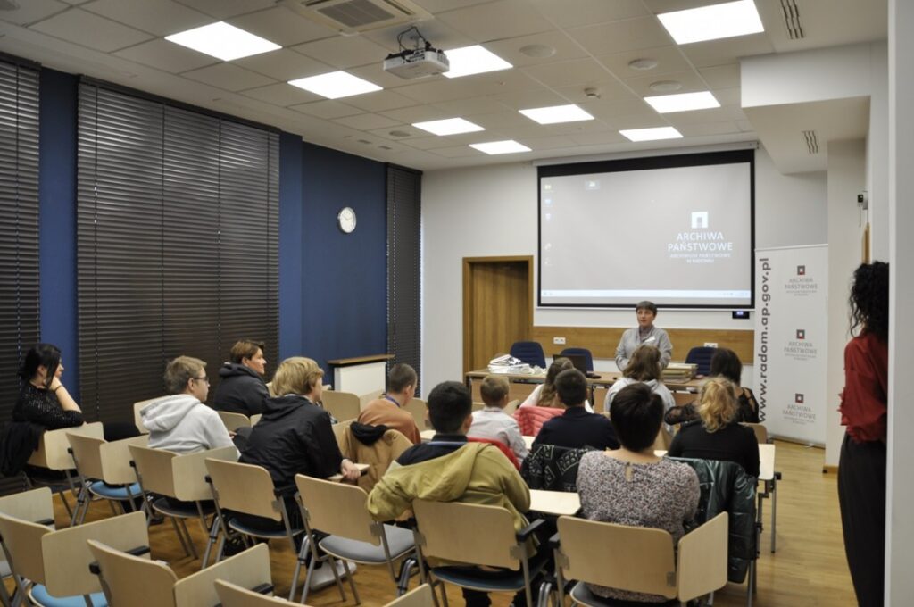 W piątek 18 października 2024 r. z okazji ogólnopolskiego tygodnia karier gościliśmy uczniów klasy 1 szkoły branżowej ze Specjalnego Ośrodka Szkolno-Wychowawczego dla dzieci niesłyszących im. Marii Grzegorzewskiej w Radomiu. Lekcję archiwalną poprowadziła Pani Irena Mazur-Kusio, która opowiedziała o zawodzie archiwisty i jego zadaniach w Archiwum Państwowym w Radomiu. Zaprezentowała rodzaje dokumentacji wchodzącej w skład naszego […]