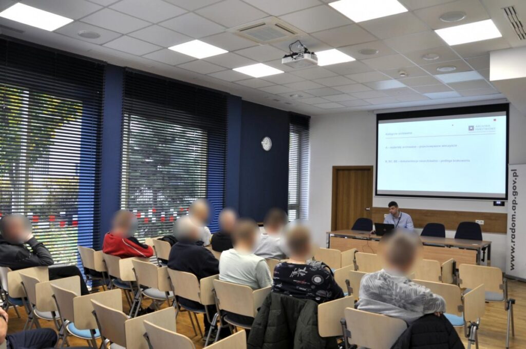 W dniu 30.10.2024 r. Archiwum Państwowe w Radomiu zorganizowało zajęcia edukacyjne dla osadzonych z Aresztu Śledczego w Radomiu. Wspomniani razem z towarzyszącym im wychowawcą wysłuchali prelekcji pana Krzysztofa Głowackiego, starszego archiwisty w Oddziale II ewidencji, opracowania i zabezpieczania zasobu archiwalnego, traktującej o dziejach, działalności i zasobie radomskiej skarbnicy materiałów archiwalnych. Następnie gości zostali oprowadzenie po […]