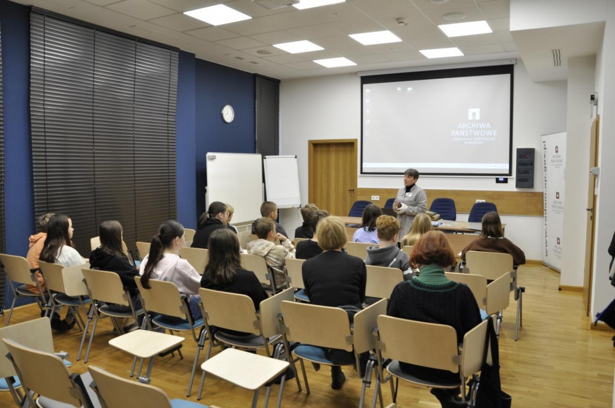 Zajęcia edukacyjne prowadziła Pani Irena Mazur-Kusio, przybliżając uczniom zawód archiwisty. Lekcja archiwalna ukazała również zadania takie jak gromadzenie, zabezpieczanie i odpowiednie przechowywanie materiałów archiwalnych. Na koniec spotkania uczniowie obejrzeli wystawę pt. Radom nie do poznania, którą nadal prezentujemy w sali wystawowej im. dr Heleny Kisiel. Nasi goście mieli również możliwość wpisania się do księgi pamiątkowej. Każdy uczestnik zajęć otrzymał miły upominek.