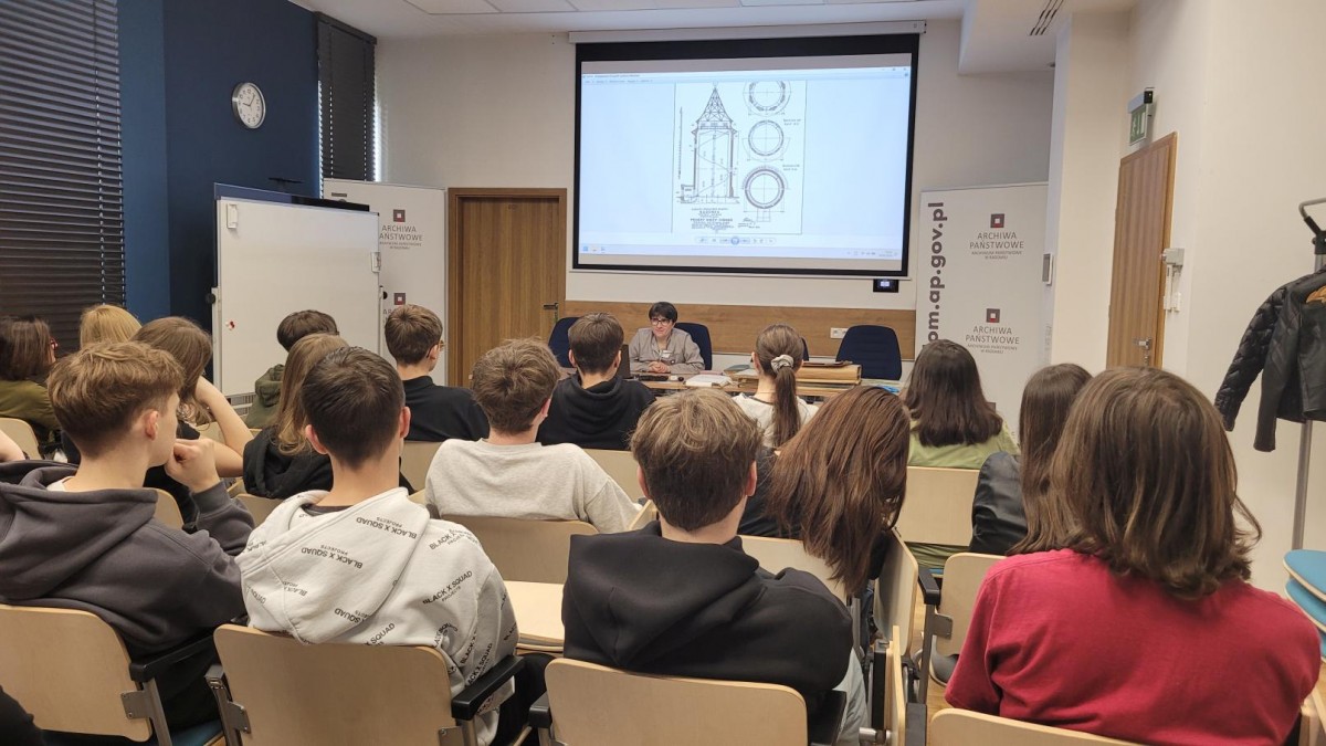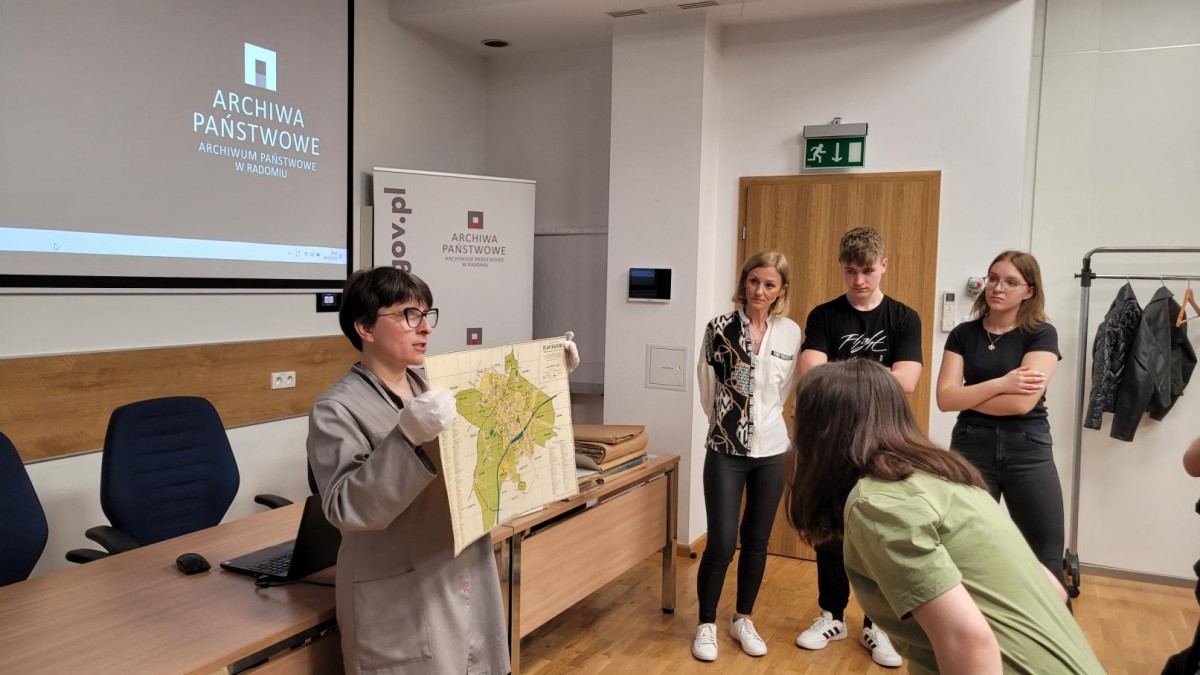 W poniedziałek 8 kwietnia 2024 r. nasze archiwum odwiedzili uczniowie 1 klasy o profilu technik-ekonomista z Zespołu Szkół Ekonomicznych w Radomiu. Z tej okazji kustosz naszego Archiwum pani Irena Mazur-Kusio poprowadziła dla nich lekcję archiwalną.