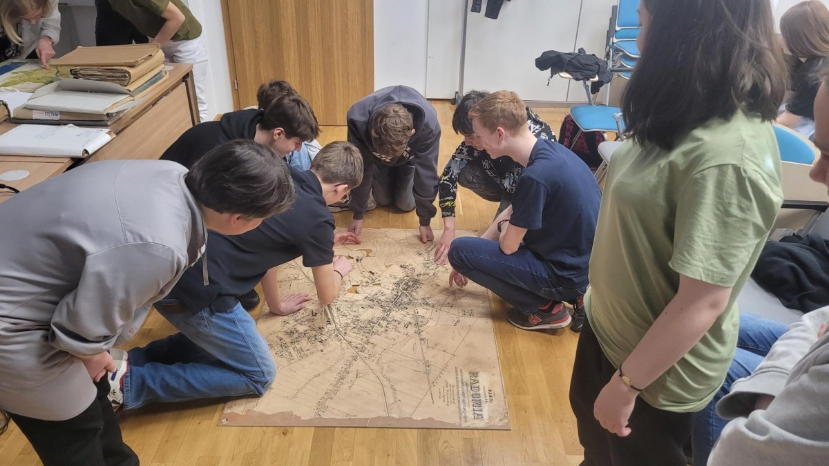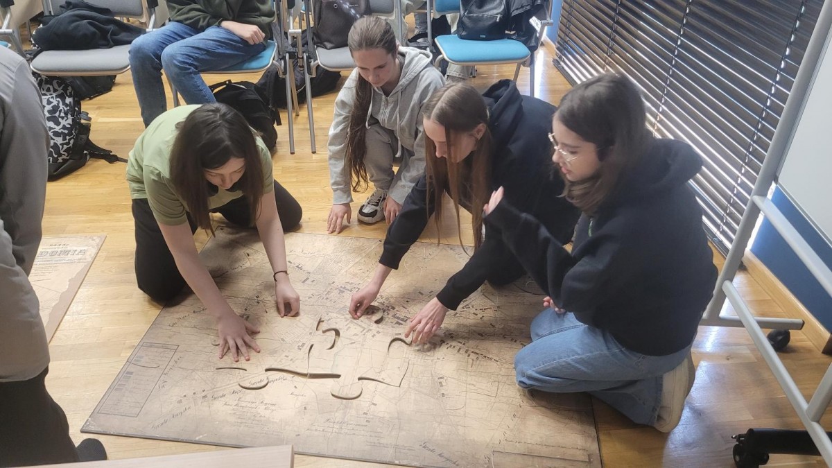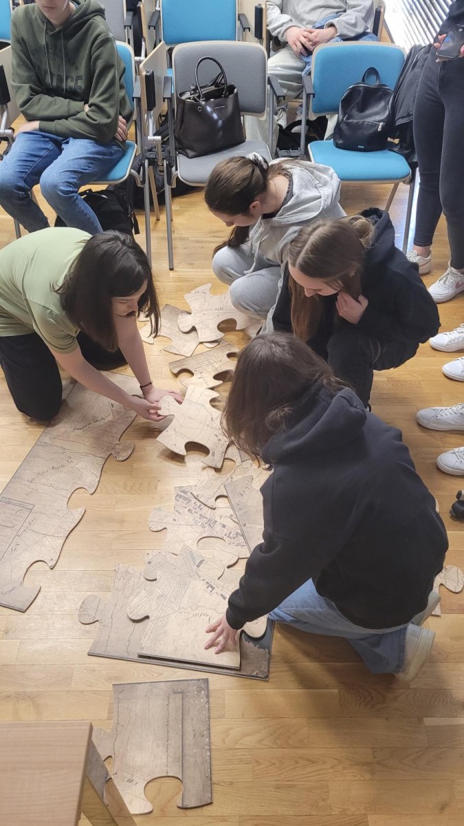 Na zakończenie dwie grupy chętnych uczniów rywalizowały o to, kto szybciej ułoży puzzle XXL, na których widnieją dwie mapy Radomia z lat 1824 i 1925. Każdy uczestnik lekcji archiwalnej otrzymał nasze materiały promocyjne.