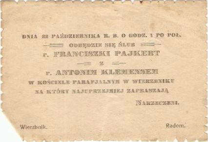 Teofila Zielińska z domu Pajkert, zmarła w Radomiu 29 lutego 1902 r., w wieku 46 lat. Wcześniej, tuż przed śmiercią, pod presją swego brata Edwarda Pajkerta, sprawującego w rodzinie rolę pater familias1, cały swój majątek wraz z piekarnią i sklepem przy ul. Rwańskiej w Radomiu przekazała córce, Helenie Apolonii Mirkowskiej.