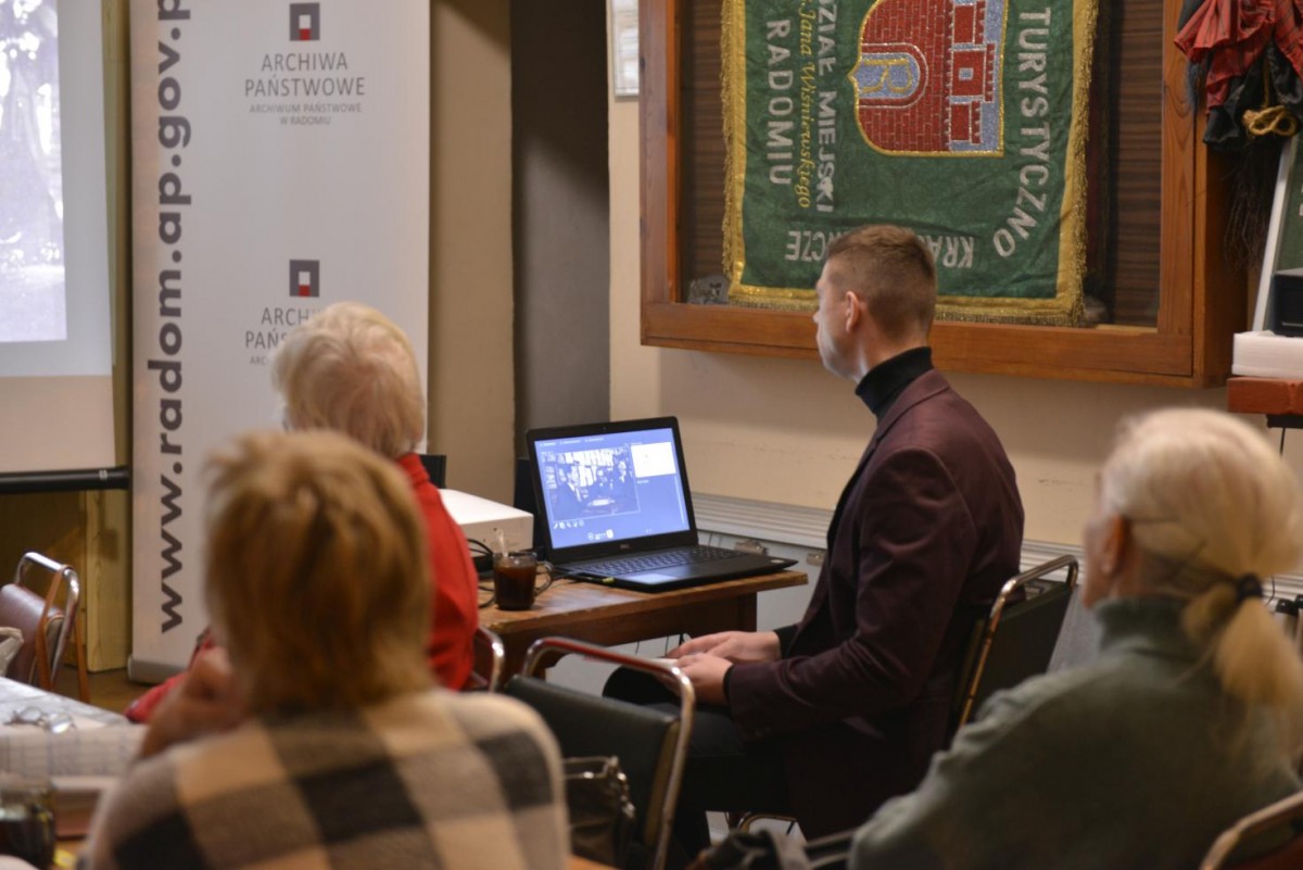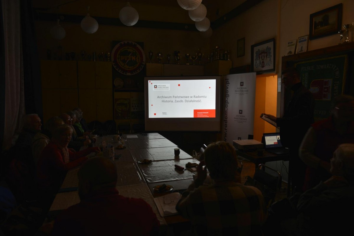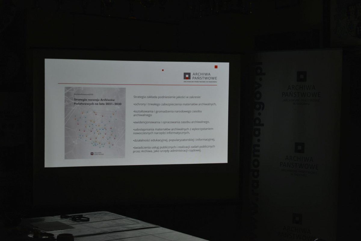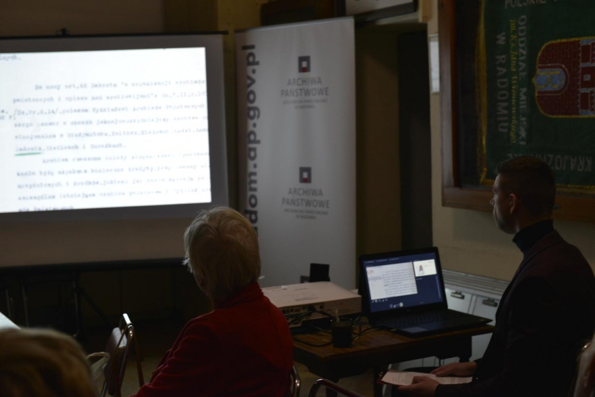 W ramach owocnie rozwijanej współpracy z ww. Kołem Pan Krzysztof Głowacki z Oddziału ewidencji, opracowania i zabezpieczania zasobu archiwalnego, wspierany przez Pana Konrada Kurysa, kierownika Działu Administracyjno-Gospodarczego, przedstawił prezentację ukazującą zasób oraz funkcjonowanie radomskiego archiwum, zarówno w przeszłości, jak i obecnie. Poza tym uczestnicy spotkania zostali zaznajomieni z działalnością archiwów państwowych w ramach sieci oraz strategią ich rozwoju na lata 2021-2030. Po wystąpieniu archiwiści udzielili odpowiedzi na pytania nurtujące zgromadzanych związane z radomską skarbnicą materiałów archiwalnych.
