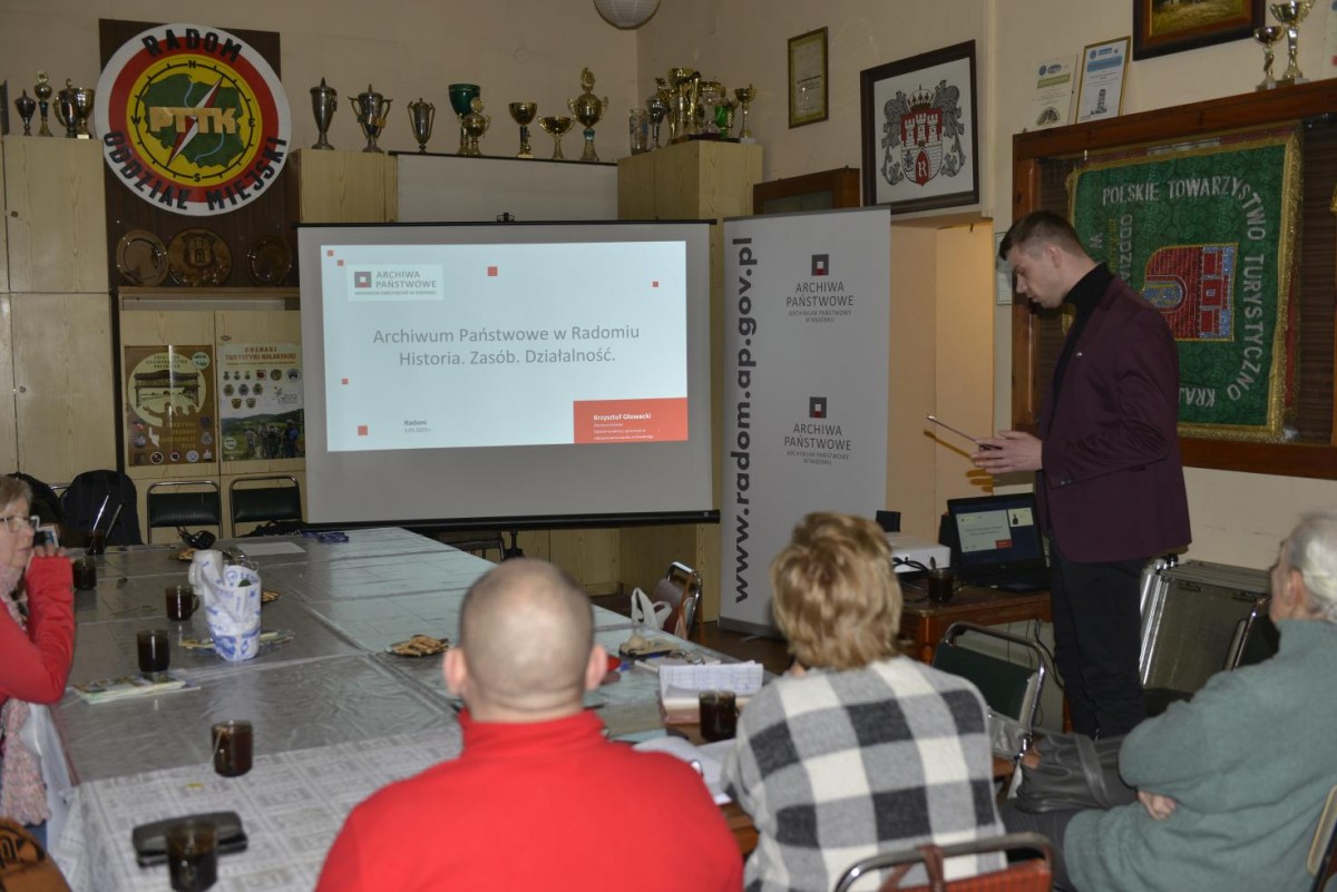 1 marca 2023 r. pracownicy Archiwum Państwowego w Radomiu gościli w siedzibie radomskiego PTTK przy ul. R. Traugutta 46/48 odpowiadając na zaproszenie Koła Przewodników Terenowych przy Oddziale Miejskim PTTK w Radomiu.