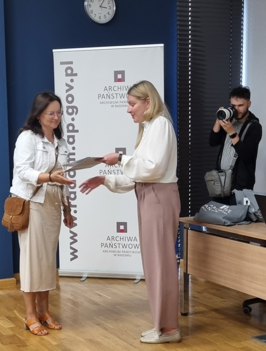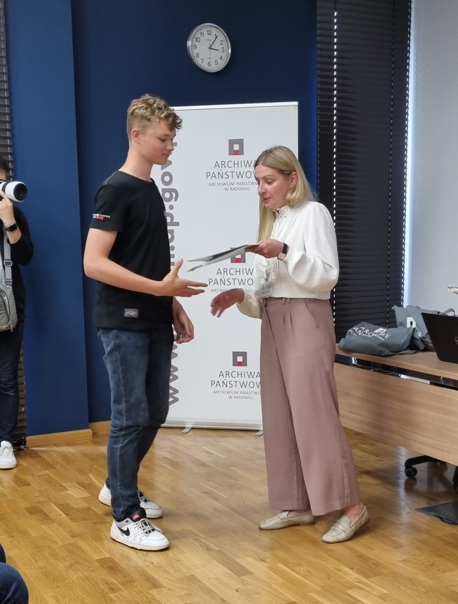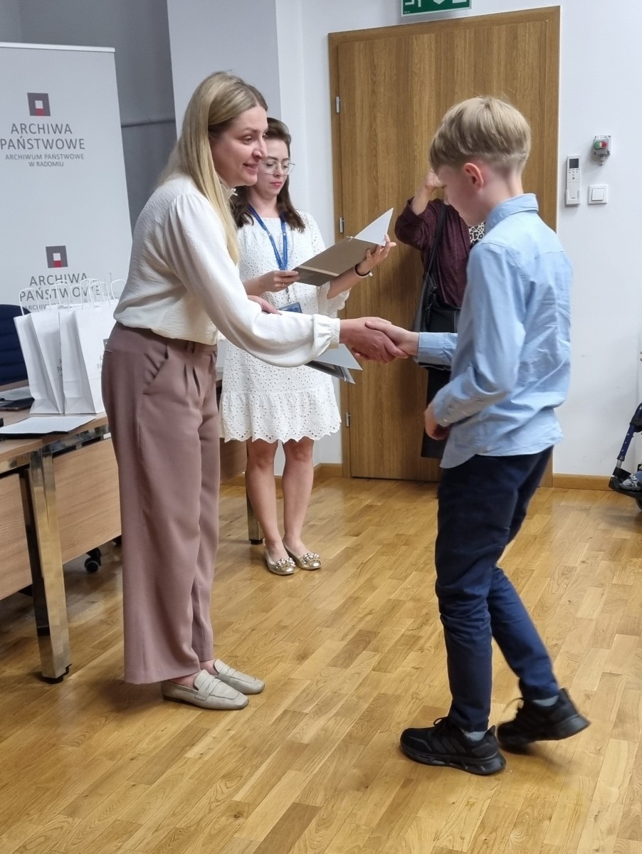 Uroczyste wręczenie dyplomów i upominków przez Panią Dyrektor Ewelinę Majsterek odbyło się 10 czerwca 2024 r. w gmachu Archiwum Państwowego w Radomiu.
