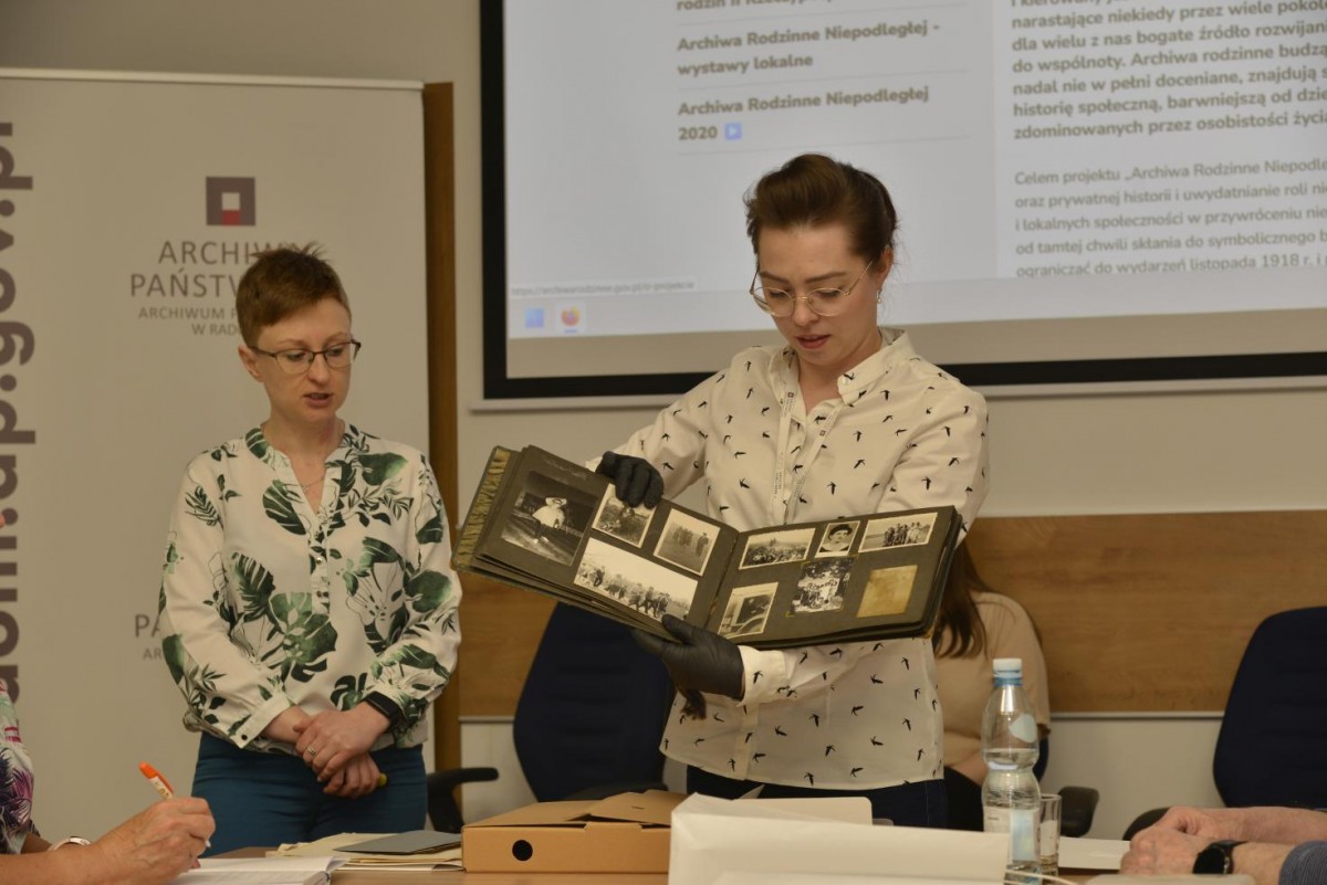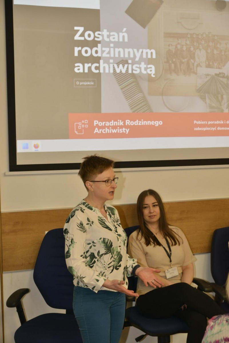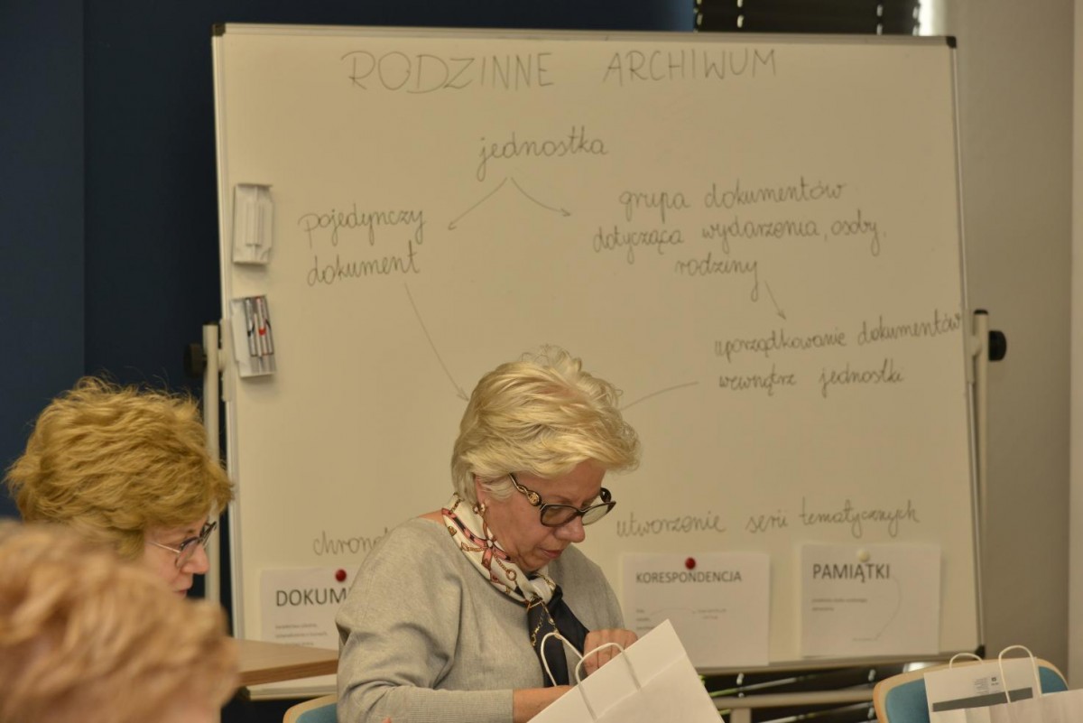 Nasze archiwistki przybliżyły zasady i dobre praktyki w porządkowaniu i systematyzacji dokumentów ukazujących historię rodzinną. Dzieliły się wiedzą teoretyczną i praktycznym doświadczeniem. Uczestnicy otrzymali zestawy narzędzi ułatwiających proste naprawy i zabezpieczenie dokumentów w rodzinnym archiwum. Później panie konserwatorki opowiedziały o naprawach papieru i bezpiecznym przechowywaniu prywatnych zbiorów.