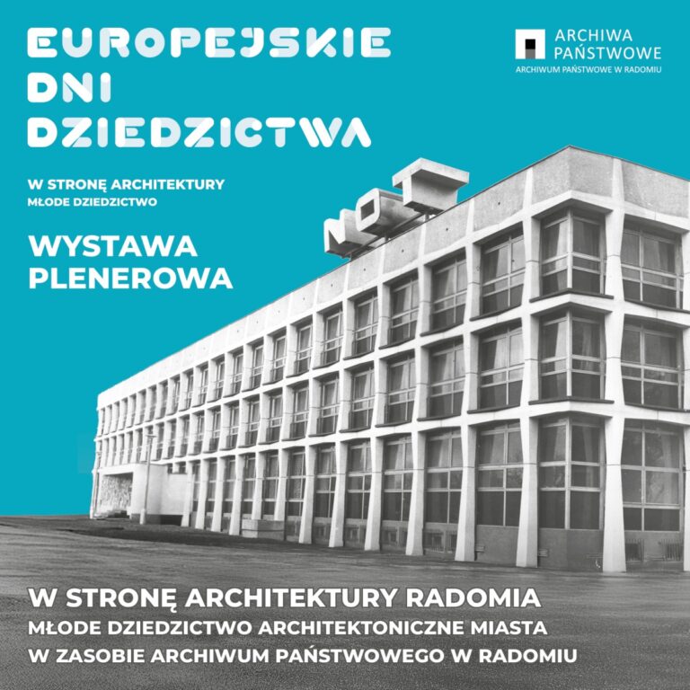 Dyrektor Archiwum Państwowego Ewelina Majsterek zaprasza na otwarcie wystawy plenerowej w dniu 22 września 2025 r. o godz. 15.30 na placu przy pomniku Jana Kochanowskiego na obrzeżach Parku T. Kościuszki przy ul. Żeromskiego w Radomiu. Ekspozycja przygotowana z okazji Europejskich Dni Dziedzictwa ma na celu przybliżyć młode dziedzictwo architektoniczne miasta, którego dokumentacja skrywa się w zasobie Archiwum Państwowego w Radomiu.